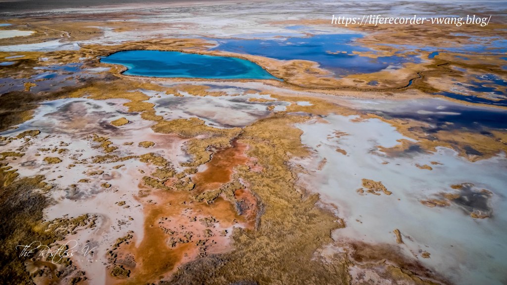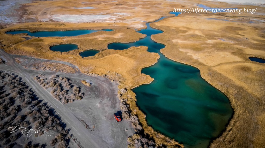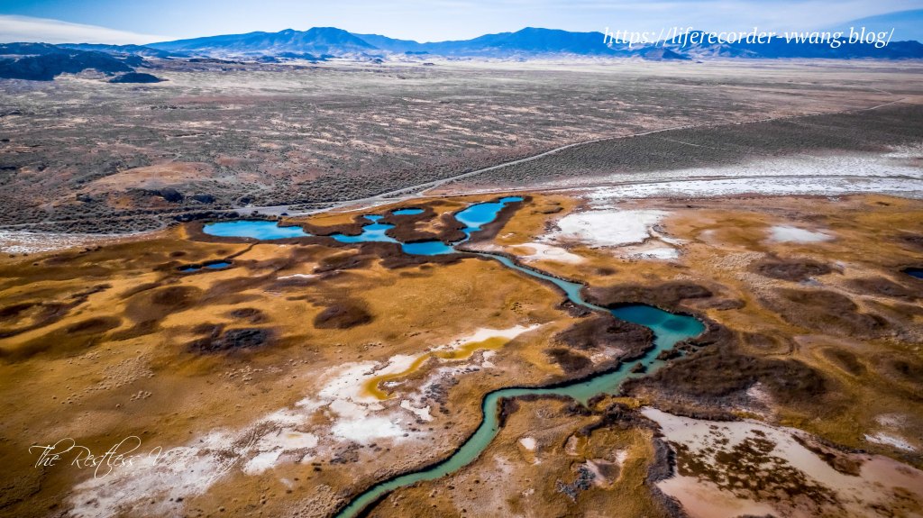 这个Walking Tour不太需要走路,是个老少皆宜的活动。首先,去Gerlach的Friends of Black Rock-High Rock的门店去check-in。然后跟着导游,开车20分钟,到达Fly Geyser所在地。之后导游会带大家环游这个农场一圈,介绍介绍这里的历史啊,地貌啊。主要的景点有两个,第一个是个温泉湖,碧蓝的湖水,水温非常舒服。可惜这里不让游客泡温泉。如果想在这里泡温泉,就得在这里当志愿者。只有工作人员和志愿者能在这里泡汤。在这里还能远远地看到1916年的那个荒废的间歇泉。